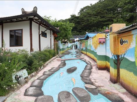한폭의 동양화를 보는것과 같이 풍경을 선사하는 안동 예끼마을은 ‘도산서부리 예술마을 조성사업’을 진행하였고 예술에 끼가 있다 해서 예끼마을이 되었다고 하더라고요. 그리하여인지 마을 방방곡곡에는 집마다 담장에 재미난 벽화들로 가꾸어져 있어 보는 재미가 있는 경북 안동 가볼만한곳이예요.