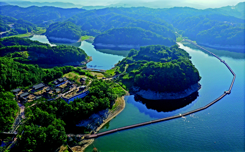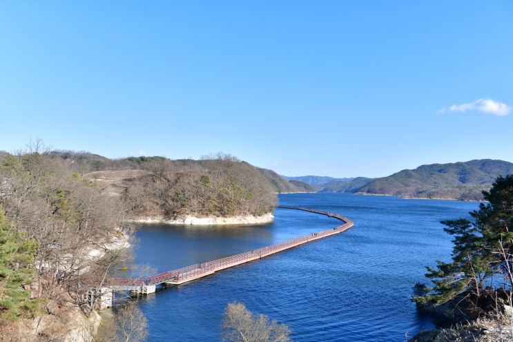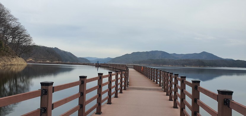 안동 예끼 마을에 위치한 선성 수상 길은 물 위에 놓인 그림 같은 길이고요. 선성현 문화단지와 안동 호반자연휴양림을 연결하는 이 길은 약 1km 길이에 폭 2.75m에 이르는 데크로 만들었습니다.특이하게도 물 위에 뜨는 부교 형태라, 바람이 불어 안동호에 잔잔한 물결이 생기면 선성 수상 길도 그렇기에 보드랍게 흔들립니다.
